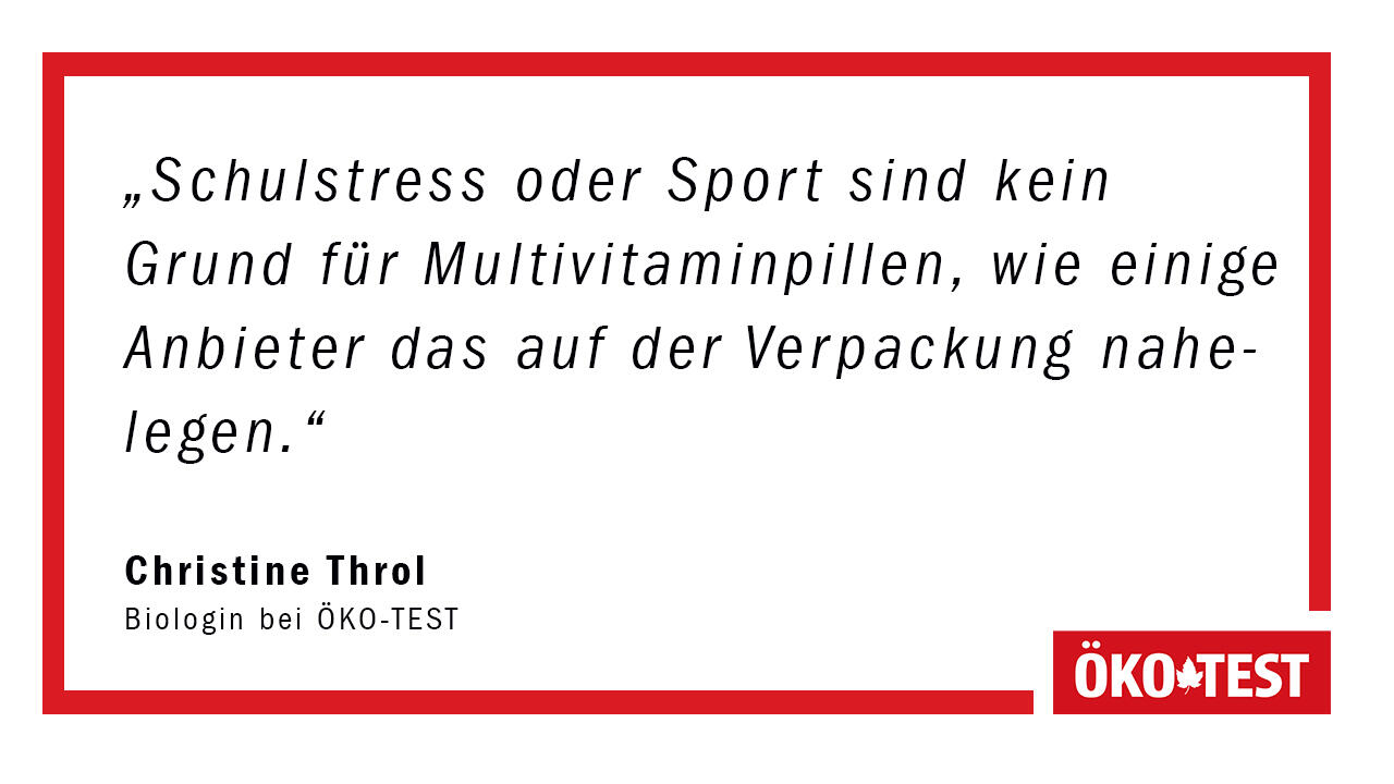 Die detaillierten Ergebnisse zu allen Produkten im Test und den Standpunkt von ÖKO-TEST zu Nahrungsergänzungsmitteln für Kinder lesen Sie in unserem ePaper: Multivitaminpräparate für Kinder im Test