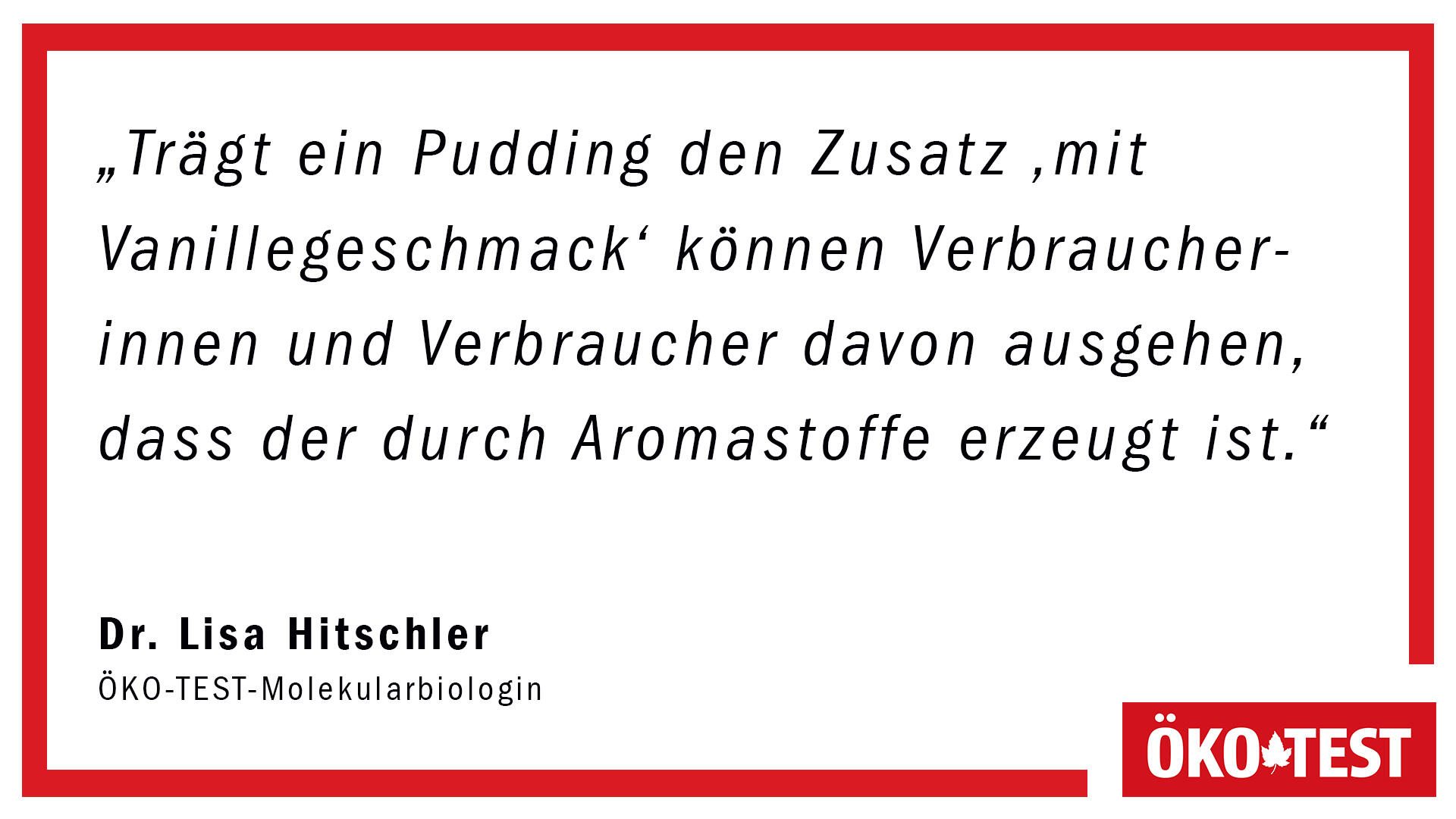 - Trägt ein Pudding den Zusatz "mit Vanillegeschmack", können Verbraucherinnen und Verbraucher davon ausgehen, dass der durch Aromastoffe erzeugt ist.
