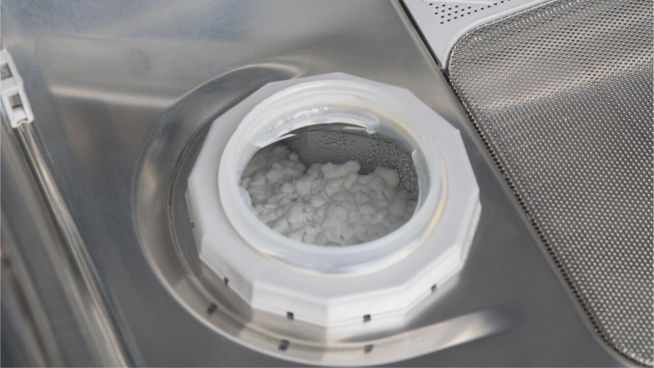 Wenn Sie nicht gerade über sehr weiches Wasser verfügen, müssen Sie regelmäßig Regeneriersalz (Spülmaschinensalz) nachfüllen, um das Wasser in Ihrem Geschirrspüler zu enthärten. Weicheres Wasser hinterlässt weniger Kalk- und Wasserflecken auf dem Geschirr. Zudem verhindert es, dass sich die Maschine mit Kalk zusetzt und irgendwann den Dienst quittiert. Verkalkte Spülmaschinen verbrauchen außerdem mehr Strom als kalkfreie. Deshalb ist Regeneriersalz – im Gegensatz zu Klarspüler – ein Muss.