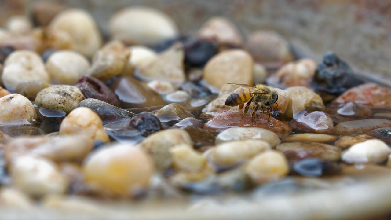 Wer insektenfreundlich gärtnern möchte, sollte außerdem an einen kleinen Pool für die Tiere denken. Die Wasserstellen dienen den Insekten zum Trinken. Der BUND empfiehlt, am besten eine flache Schale regelmäßig aufzufüllen und ein paar Steine oder etwas Holz reinzulegen. Diese dienen den Insekten als Lande- und Trinkstellen. (Denn schwimmen wollen sie in dem kleinen Bienen-Pool eher nicht.)