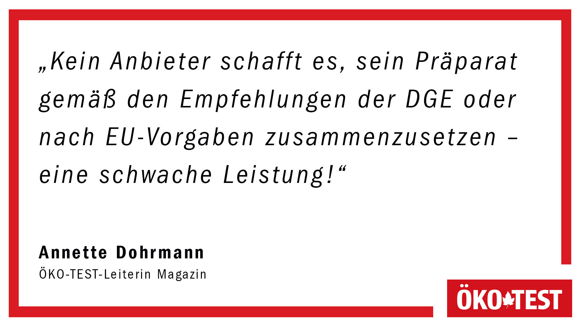 Dann sind in der nach Packungsanweisung zubereiteten Lösung maximal 1.150 Milligramm pro Liter empfohlen. Präparate, die mehr als diese Menge Natrium deklarieren, erhalten einen Minuspunkt.