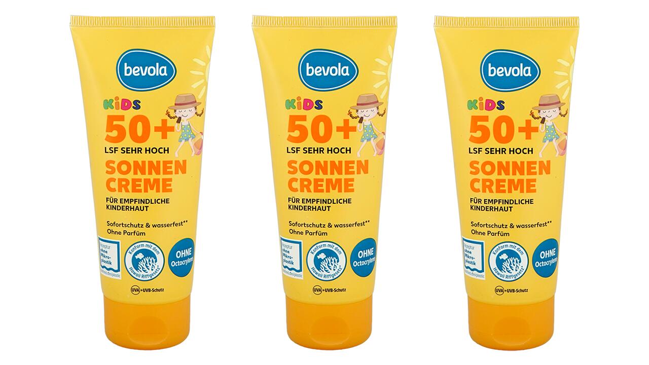 Zur Einordnung des Testergebnisses: Nach aktuellem Forschungsstand geht keine gesundheitliche Gefährdung von den DnHexP-Gehalten aus, die das Labor in der Bevola-Sonnencreme entdeckt hat. Um in die Nähe bedenklicher Aufnahmemengen über die Haut zu kommen, müsste ein kleines Kind täglich mit mehr als einem Kilo des belasteten Sonnenschutzmittels eingeschmiert werden.