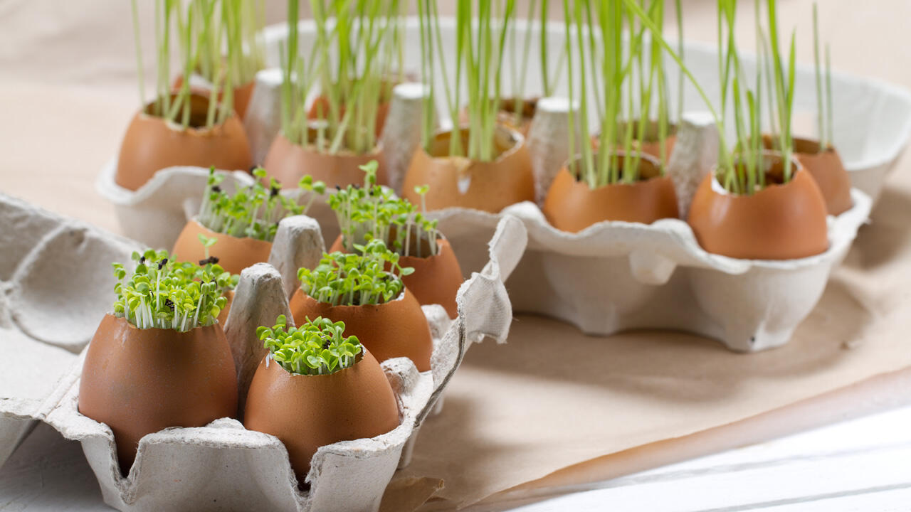 Wenn Sie den Zeitpunkt fürs Aussäen verpasst haben, können problemlos Gartenkresse als Ersatz für Ostergras verwenden. Kresse keimt schnell und erreicht, wenn sie an einem hellen, warmen Ort wächst, schon nach fünf bis sechs Tagen eine ordentliche Höhe. Nach Ostern können Sie sie einfach abschneiden und Salat oder Butterbrote damit aufpeppen.
