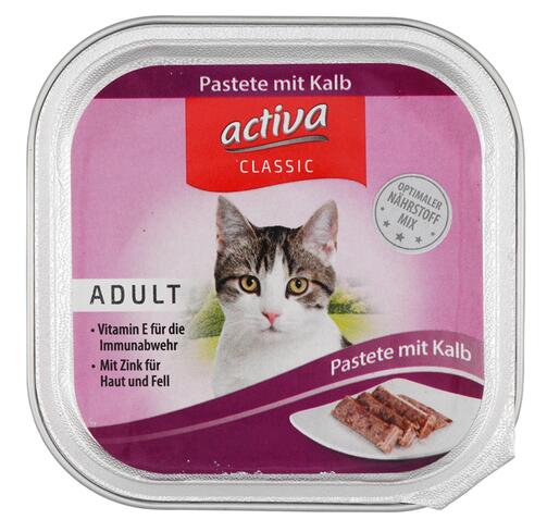 ActivaActiva Classic Adult Pastete mit Kalb KategorieKatzenfutterFutterkosten pro Tag1,79 EuroAlle Produkte des Tests anzeigen