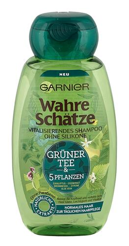 L'OréalGarnier Wahre Schätze Grüner Tee KategorieShampoos ohne SilikonePreis pro 250 ml1,95 EuroAlle Produkte des Tests anzeigen