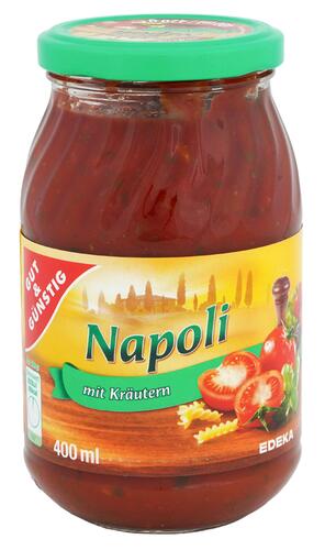 EdekaGut & Günstig Napoli Tomatensauce mit Kräutern KategorieTomatensauce, KlassikPreis pro 400 Gramm oder Milliliter*0,75 EuroAlle Produkte des Tests anzeigen