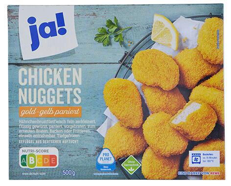 Rewe (Sprehe Geflügel- und Tiefkühlfeinkost)Ja! Chicken Nuggets KategorieChicken NuggetsPreis pro 500 Gramm3,99 EuroAlle Produkte des Tests anzeigen