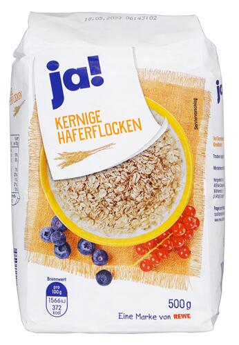 Rewe (Avena Cerealien)Ja! Kernige Haferflocken KategorieHaferflocken, kernigPreis pro 500 Gramm0,69 EuroAlle Produkte des Tests anzeigen