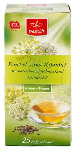Aldi SüdWestcliff Fenchel-Anis-Kümmel, 25 Beutel KategorieKräuterteePreis pro 100 Gramm1,78 EuroAlle Produkte des Tests anzeigen